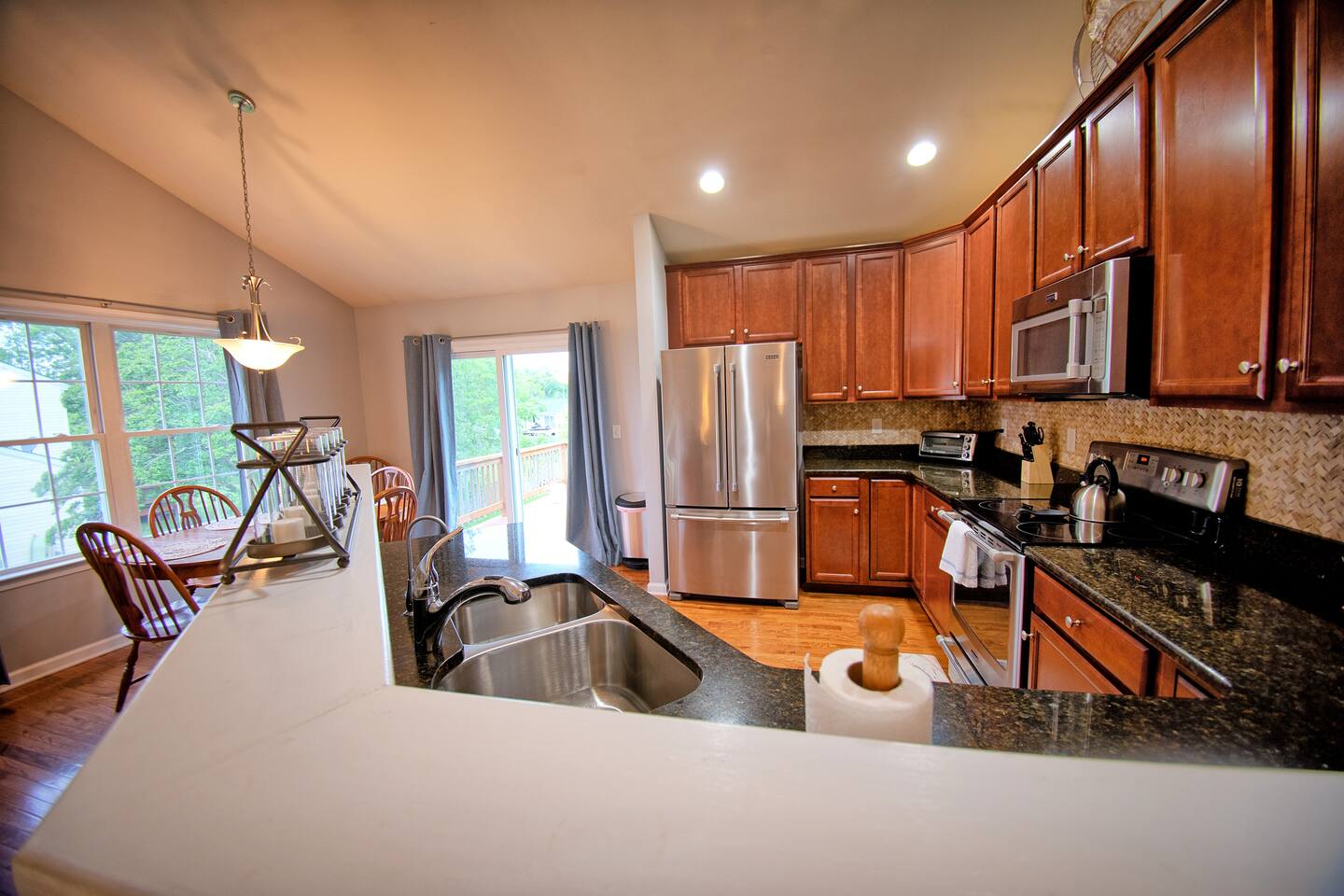 Please Note: - The home is a split level with necessity to climb a number of stairs to access the front door and the upper and lower floor inside. - The house is located in a quiet Residential Community and the HOA has set a STRICT quiet hours time from 10 PM to 7 AM. Please respect the surrounding neighbors as any violations could result in involvement of local authorities and immediate cancelation of the reservation without refund. - The neighbor to the right when looking at the house from the street, prefers their privacy and kindly asks not to be interacted with. Thank you. - There is enough parking in the driveway for 5 vehicles, no street parking. - Per county regulations, there is a maximum of 8 adults (18 years or older) allowed to stay over at the property.