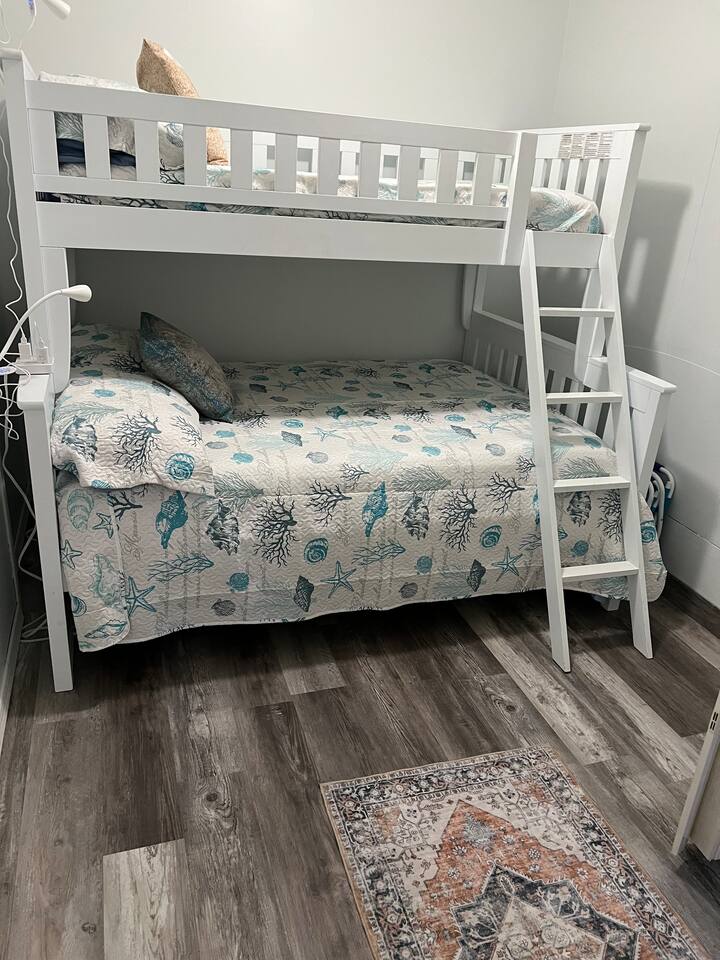 *** This unit has some NEW 2025 updates! Along with the NEW Sheets, Towels & Comforters, there was NEW Flooring installed in both bedrooms and the bathroom & NEW Blinds and Ceiling Fan as well! *** The Master Bedroom has a Full-Size Bed while the the second bedroom has a Bunk Bed (guests sleep on Bunk Bed at their own risk) with a full and twin size mattress. There is also a pull-out bed within the Living-Room sofa that sleeps two. The living room TV is a smart TV compatible with all your streaming apps. The Condo has A/C, Heating, Kitchen, Microwave, and a Coffee Maker w/Supplies, etc. Paid Washer/Dryer is separate and on site. Sheets/linens, bath towels, blankets & pillows, ARE provided. Beach Towels are NOT provided. The kitchen is equipped with cookware and essentials for all your cooking needs.